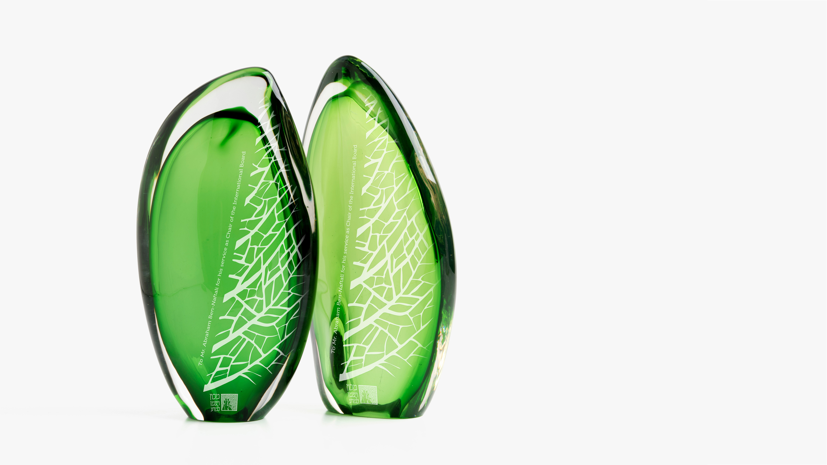 Shaped as a mountain summit, the object represents the strong bond between the Weizmann Institute of Science and its supporters, which work hand-in-hand to advance science so that it reaches new heights.